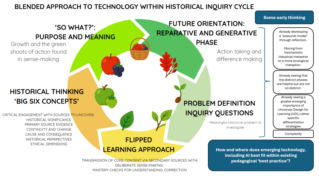 These reflections sit at the heart of my inquiry into a technology-infused, transformative history pedagogy. My work explores how AI-infused, flipped, and inclusive approaches can foster civic, personal, and global agency in students. Each entry in this blog is more than anecdote; it is a moment of praxis – an attempt to live the questions of my research in real classrooms, with real students.