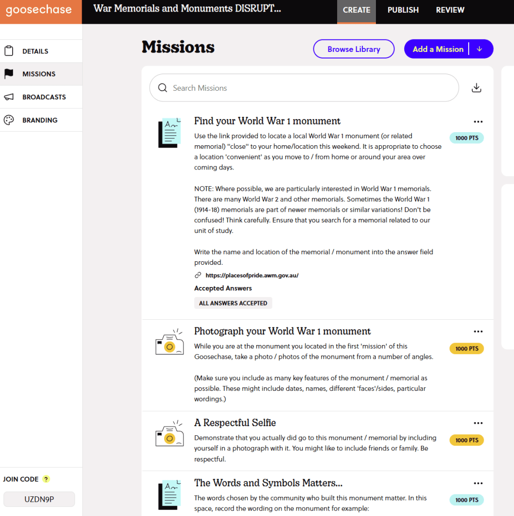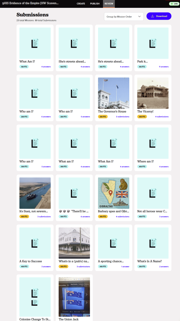 Again and again, I’ve seen GooseChase draw out reflections and observations that would never have emerged from scrawled beetle-scratchings of notes on a crumpled worksheet on a clipboard: students using the app can be positioned to grapple with silences, notice marginalised stories, or make personal, meaningful connections to the past. For me, GooseChase isn’t an optional tech add-on; it’s a core part of how I design field experiences that foster agency, presence, and historical thinking.