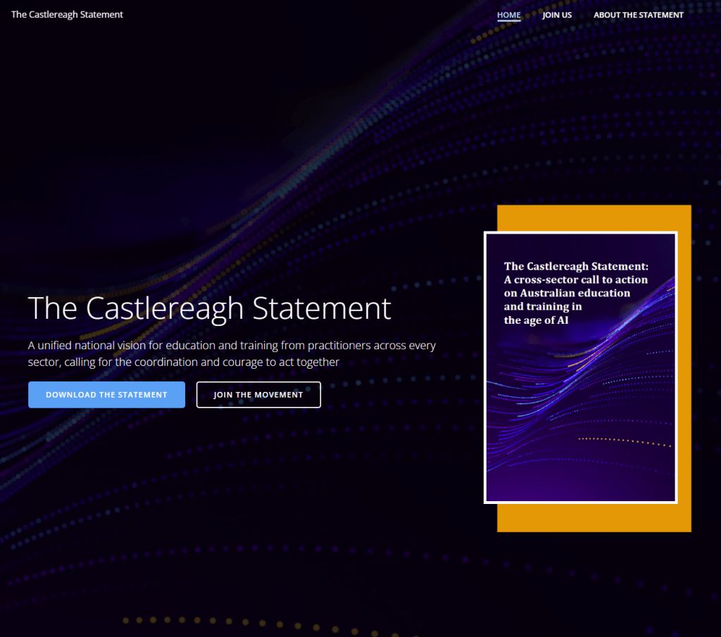 The Castlereagh Statement is a cross-sector call to action on Australian education and training in the age of AI – a unified vision that argues we need coordination and collective courage, not disconnected pilots and policy fragments.
